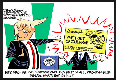 - The cartoon below shows Trump giving Kavanaugh a Get Out Of Jail Free Card