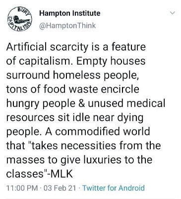 "Artificial scarcity is a feature of capitalism."